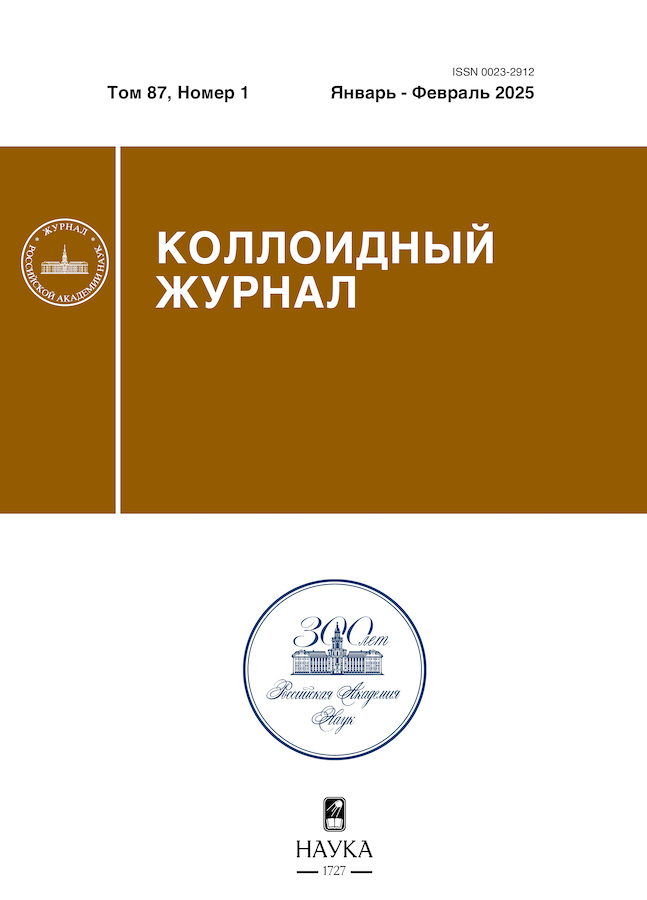 В настоящей работе проведено исследование влияния дополнительной обработки порошка детонационного наноалмаза (ДНА) базовой очистки на состав поверхности частиц ДНА, их электрокинетические свойства, а также агрегативную устойчивость в растворах индифферентного электролита (NaCl) в широком диапазоне рН. Установлено, что более высокая степень очистки образцов и увеличение количества протонированных карбоксильных групп на поверхности частиц ДНА вследствие дополнительной кислотной и термоаммиачной обработки приводят к смещению положения изоэлектрической точки (ИЭТ) от рН 7.0 для исходного образца до рН 6.3 и рН 6.0 соответственно. Показано, что величины порогов коагуляции гидрозолей при естественном рН и положение зон устойчивости в 10–3 М растворе хлорида натрия находятся в полном соответствии со значениями ИЭТ. Наибольшие пороговые значения при рН 5.8 наблюдаются для исходного ДНА, тогда как для дисперсии частиц ДНА после термоаммиачной обработки быстрая коагуляция протекает уже при концентрации 10–4 М. Показано также, что зоны агрегативной устойчивости для дополнительно обработанных образцов ДНА практически совпадают. В случае ДНА базовой очистки зона устойчивости в области положительных значений дзета-потенциала расширяется, а в области отрицательных значений устойчивости не наблюдается, вероятно, вследствие частичного растворения поверхностных примесей при высоких рН и перехода их в ионной форме в раствор, что вызывает коагуляцию частиц ДНА.