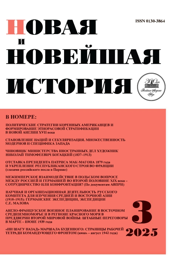 В статье рассматривается взаимодействие военного руководства Великобритании и Франции в первой половине 1939 г. при планировании возможных операций на «колониальных» театрах военных действий против фашистской Италии в случае ее вступления в назревавший мировой конфликт на стороне нацистской Германии. В центре внимания автора – двусторонние штабные переговоры, проходившие сначала в Лондоне, а затем в административных центрах колониальных и подмандатных территорий в марте – июне 1939 г. Началу этих переговоров в немалой степени способствовал острый франко-итальянский политический конфликт, начавшийся в ноябре 1938 г., в результате которого Франция и Италия начали ускоренно наращивать свои военные контингенты в Северной Африке, а попытки Великобритании выступить в роли посредника успеха не имели. В ходе англо-французских штабных переговоров подробно обсуждались планы военных действий в Северной Африке и в странах Африканского Рога – везде, где итальянские колонии соприкасались с владениями Великобритании и Франции, а также совместные действия на Ближнем Востоке. Помимо планов развертывания армии, флота и авиации, выдвигались идеи ослабления итальянского тыла путем организации восстаний местного населения в Ливии и Эфиопии. Хотя французские представители демонстрировали значительно бóльшую уверенность в успехе операций против Италии, чем их британские союзники, простого сопоставления численности воинских контингентов было достаточно, чтобы отказаться от мысли о быстром разгроме Италии в самом начале войны. Консультации выявили неподготовленность вооруженных сил двух держав к столкновению даже с таким относительно слабым противником, как Италия. Эта ситуация была следствием длительной политики «умиротворения» в отношении фашистской Италии, долгое время проводившейся западными державами в тщетной надежде ослабить ее связь с нацистской Германией.
