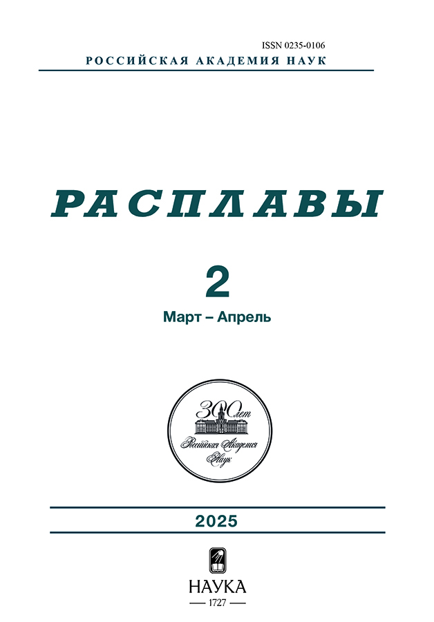 Медь и ее сплавы широко применяются в деталях металлургического оборудования. Из‒за высокой теплоемкости и отражающей способности излучения ИК‒диапазона, детали из меди нашли применение в водоохлаждаемых элементах доменных печей, например, в фурмах, повергающихся активному газо‒абразивному, эрозионному и другим видам износа и газовой коррозии. Медь и ее сплавы имеют низкую стойкость против износа и коррозии. Для увеличения стойкости медных деталей предлагаются термобарьерные покрытия путем последовательного нанесения систем Ni–B–Si, Ni–Cr–Al‒Y и ZrO2. Однако, первые слои покрытия имеют низкую адгезию, и как следствие, низкую прочность первого и последующих слоев. Лазерное переплавление решает проблему адгезии первого слоя к меди и остальных слоев к оплавленному слою. Используя методы CALPHAD в программном пакете TermoCalc (номер версии программного обеспечения 2024.1.132110‒55) проведено моделирование влияния оплавления на свойства защитного покрытия системы Ni–B–Si. В качестве базового был выбран состав: Ni – 86.97 ат.%, B – 6.93 ат.%, Si – 6.1 ат.%. При воздействии лазерного излучения на покрытие, нанесенное газотермическим методом, наблюдается активное взаимодействие компонентов покрытия с медью с образованием сплошного слоя, содержащего в себе новые фазы и химические элементы. Появление некоторых из этих фаз изредка приводит к растрескиванию вследствие образования медно‒никелевого сплава (монель‒металла), обладающего относительно невысокой пластичностью. С использованием данных рентгенофазового анализа подтверждено, что в процессе оплавления происходит активное перемешивание компонентов покрытия (Ni–B–Si) с компонентами подложки (Cu) с образованием устойчивого соединения Cu с Ni. В связи с этим, при помощи математического моделирования, спрогнозированы изменения плотности и методом Шейла определены скорости кристаллизации, а также фазы, образующиеся при охлаждении в покрытии, а именно: Ni86.97B6.93Si6.1, Ni84.47Cu2.5B6.93Si6.1, Ni81.97Cu5B6.93Si6.1, Ni76.97Cu10B6.93Si6.1, Ni71.97Cu15B6.93Si6.1, Ni66.97Cu20B6.93Si6.1. С помощью расчетных методов, исходя из положений термодинамики, описан процесс лазерного оплавления при нагреве от 1750 К до 3000 К и последующем охлаждении от 1750 К до 500 К. При исследовании процесса оплавления, для всех составов определено, что благоприятным для формирования покрытия хорошего качества является содержание меди в покрытии порядка 15–20 ат.%, так как при этих концентрациях происходит наиболее полное высвобождение атомов меди с границ зерен, их переход в приповерхностные слои покрытия и связывание их с никелем в устойчивые соединения типа монель‒металл.
