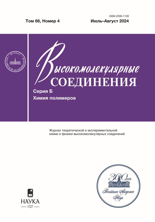 С помощью подхода “прививка через” в водной среде синтезированы альтернантные цилиндрические полимерные щетки. Макромономерами служили поли-2-этил-2-оксазолин и поли-2-изопропил-2-оксазолин, содержащие в качестве концевых групп остатки винилбензола и N-замещенного малеимида. Макромономеры с молекулярной массой (4.3–4.7) × 103 получены методом катионной полимеризации с раскрытием цикла 2-алкил-2-оксазолинов с применением инициаторов 4-хлорметилстирола и 4-малеимидобензолсульфонилхлорида. Полимерные щетки получены сополимеризацией макромономеров в растворе хлорбензола при температуре 70 °C и инициировании динитрилом азобисизомасляной кислоты, а также в водных растворах в условиях окислительно-восстановительного инициирования под действием персульфата калия и сульфата железа(II) в присутствии восстановителя гидросульфита натрия. Определена относительная активность полиоксазолиновых макромономеров по методу Майо‒Льюиса при их сополимеризации в растворе хлорбензола: r1 = 0.015 и r2 = 0.115. Рассмотрена возможность полимеризации в водных растворах при пониженных (3 °C) и повышенных (75 °C) значениях температуры. Молекулярно-массовые и гидродинамические характеристики полимерных щеток определены методами гель-проникающей хроматографии, статического и динамического рассеяния света. Образцы альтернантных полимерных щеток характеризуются массами (15‒52) × 103 и узким молекулярно-массовым распределением 1.32–1.66. Температура фазового разделения в водных растворах для исследованных полимерных щеток находится в диапазоне 33°–39 °C.