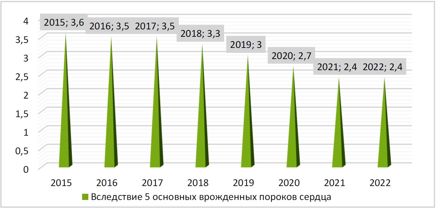 Анализируя современные тенденции по частоте встречаемости ВПС, следует отметить рост распространенности врожденных аномалий развития сердечно-сосудистой системы [3].