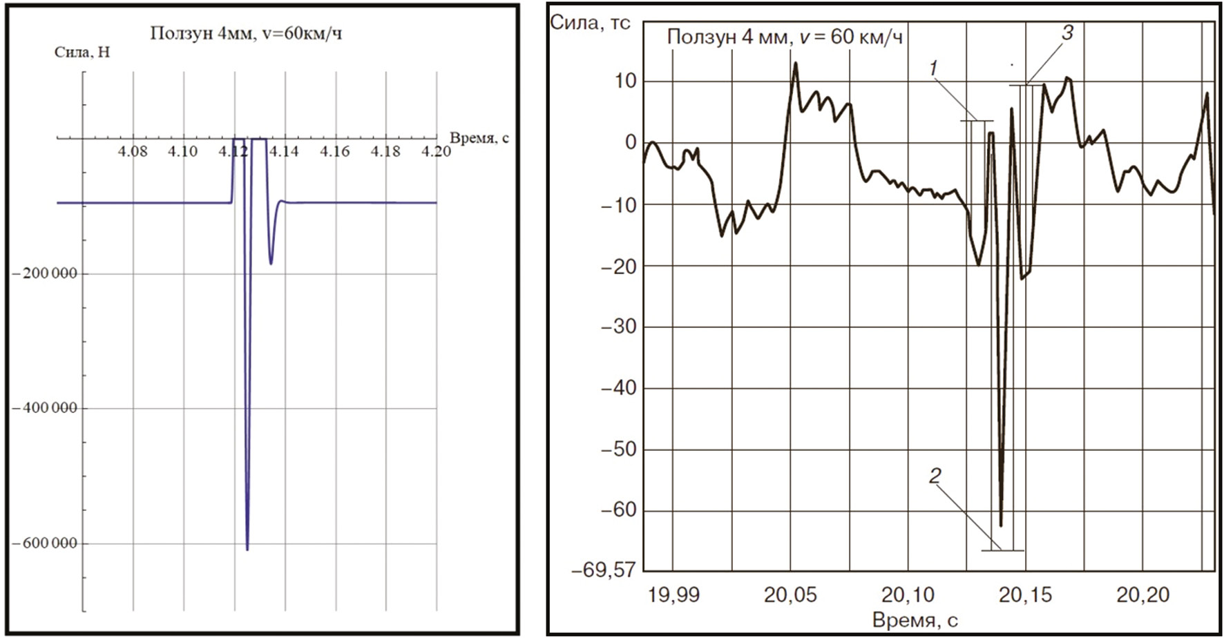 4. Рис. 3. Пример полученных графиков сил ударного взаимодействия